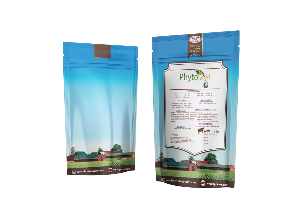 PHYTOGOLD is premix product a contents of Thymol, Turmeric extract (curcuminoid) and mixed organic acid (e.g. Formic acid, Lactic acid and Butyric acid) for inhibit pathogenic bacteria, improve feed utilization and growth rate in livestock.