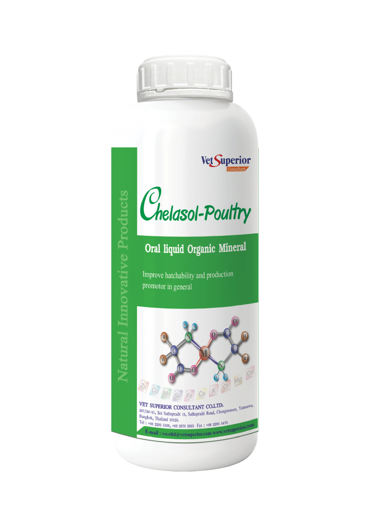 Chelasol-Poultry is a soluble organic minerals made by reacting amino acids with minerals in a proper balanced ratio to produce a soluble organic mineral. This process produces a Chelasol-Poultry which is highly bioavailable to all kinds of poultry. It is more reality absorbed and utilized.